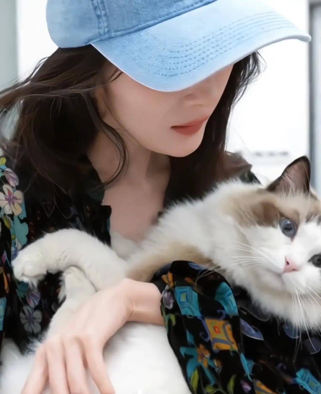 小布偶猫在杨幂怀里直接躺平了,完全不挣扎,一副想要跟着杨幂回家的样子。这只小猫咪好幸福吧,杨幂的怀抱一定很温暖,它一副很舒服的样子。